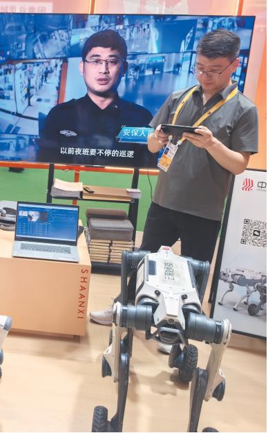 “它的用途很多。”西安中祯实业有限公司总经理王卫东介绍,“只要装上热成像云台、机械臂、气体传感器、声学相机等配件,再通过精密算力定好路线、调好系统,我们二次开发的机器狗就可广泛应用于电力巡检、工地测绘、安防巡逻等众多场景,完成各类极端环境作业任务。”